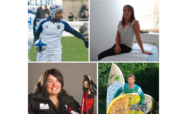Quelques sportifs de haut niveau récemment devenus kinés : Sandrine Agricole, Émilie Le Pennec, Solène Jambaqué, Xabi Laffitte...